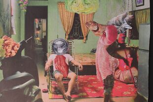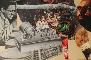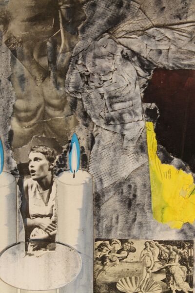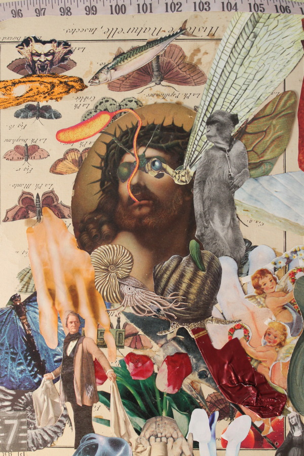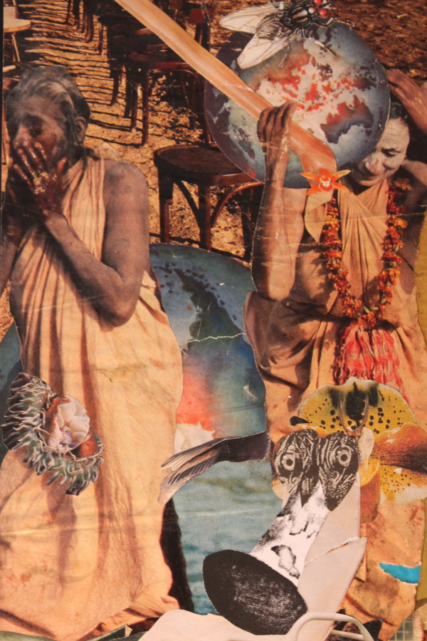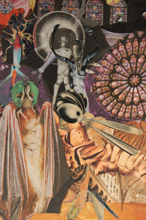 Der Reiz bei der Arbeit für die Collagen beginnt lange vor dem Zusammenkleben. Er beginnt beim Sammeln. Ich wende mich dem Reiz zu, der im Gebrauchsartikel liegt: der von der Tageszeitung ausgeht, mit der ich mich tagtäglich konfrontiere. In den Illustrierten, Werbezetteln, Plakaten, Flugblättern, die mir hinterher geschmissen werden. Es ist Wegwerfmaterial; ich möchte zurück werden. Dabei reagieren ich auf Farben und Formen, wie sie mir ins Auge springen. Ich achte darauf, Fotos von bildnerischem Reiz zu sammeln, ums sie zu "samplen". Es geht mir also auch um die Bedeutung, die sie transportieren, um ihren ikonografischen Wert, und ich strebe es an, ihren Reiz auszunutzen; das ist ein bisschen so, wie es die hip hop Kultur vervollkommnet hat: das geradezu schamlose Ausnutzen von bereits Vorhandenem. Als Material. Als Basis. Als Kontrapunkt. Als Leinwand. Als Basis. Ich sammle Bilder von aktuellen Ereignissen: Katastrophen. Bilder, die zeitgeschichtlich wichtige Moment festhalten. Die aus der Geschichte stammen: Lakehurst; Nessie; rumble in the jungle.
