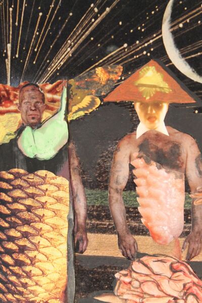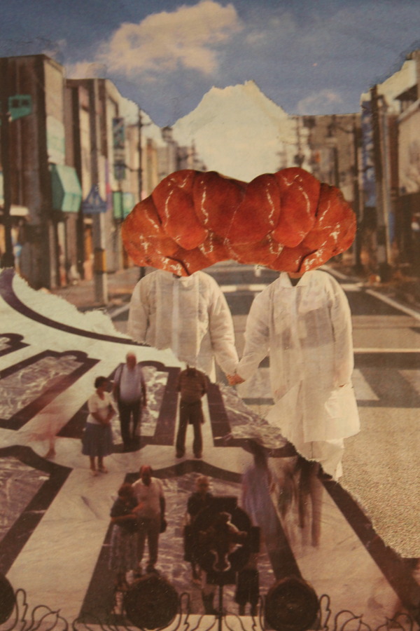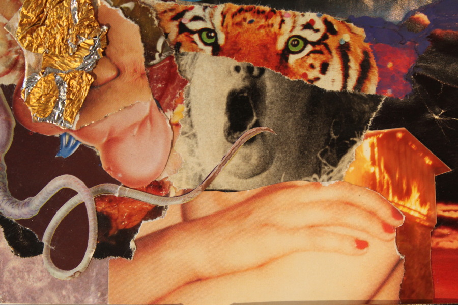 Der Reiz bei der Arbeit für die Collagen beginnt lange vor dem Zusammenkleben. Er beginnt beim Sammeln. Ich wende mich dem Reiz zu, der im Gebrauchsartikel liegt: der von der Tageszeitung ausgeht, mit der ich mich tagtäglich konfrontiere. In den Illustrierten, Werbezetteln, Plakaten, Flugblättern, die mir hinterher geschmissen werden. Es ist Wegwerfmaterial; ich möchte zurück werden. Dabei reagieren ich auf Farben und Formen, wie sie mir ins Auge springen. Ich achte darauf, Fotos von bildnerischem Reiz zu sammeln, ums sie zu "samplen". Es geht mir also auch um die Bedeutung, die sie transportieren, um ihren ikonografischen Wert, und ich strebe es an, ihren Reiz auszunutzen; das ist ein bisschen so, wie es die hip hop Kultur vervollkommnet hat: das geradezu schamlose Ausnutzen von bereits Vorhandenem. Als Material. Als Basis. Als Kontrapunkt. Als Leinwand. Als Basis. Ich sammle Bilder von aktuellen Ereignissen: Katastrophen. Bilder, die zeitgeschichtlich wichtige Moment festhalten. Die aus der Geschichte stammen: Lakehurst; Nessie; rumble in the jungle.