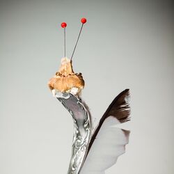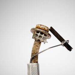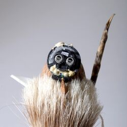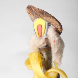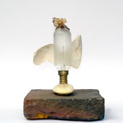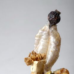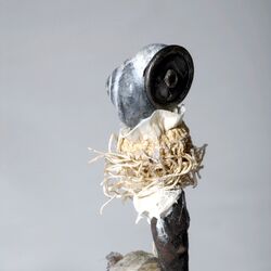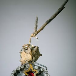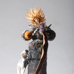 Eines Tages schob ich meine Schätze, einmal mehr, auf meinem Schreibtisch hin und her, und es fügte sich etwas: Irgendwie kam noch ein Tropfen Kleber hinzu, und auf einmal stand etwas vor mir, das mich anzublicken schien. Es war eine Frage des Blickes: eine bestimmte Art, die Dinge anzuschauen. In ihrer fatalen Eigenschaft, dass sie nichts weiter sind als eine bestimmte Anordnung von Elementarteilchen. Was auch für den Menschen gilt.