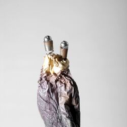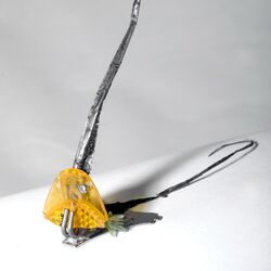 Morbs bestehen aus Gefundenem. Ich habe das Material, aus dem sie bestehen, nicht zusammengesucht. Ebenso, wie das Wort aus dem Irgendwo, Nirgendwo stammt, so bestehen die Morbs aus Einzel-Teilen, die irgendwo herumlagen, im Alltag, mitten in der Welt, und doch schon auf dem Wege ins Nirgendwo waren: so genannter Müll. Abfall, Zeugs, das sich auf dem Weg in den Orkus befand. Ins Abseits. Abfall: etwas, das abgefallen ist aus der Welt des Nutzens. Herausgefallen ist aus der Welt des Nutzens, wie er uns vernünftig erscheint.